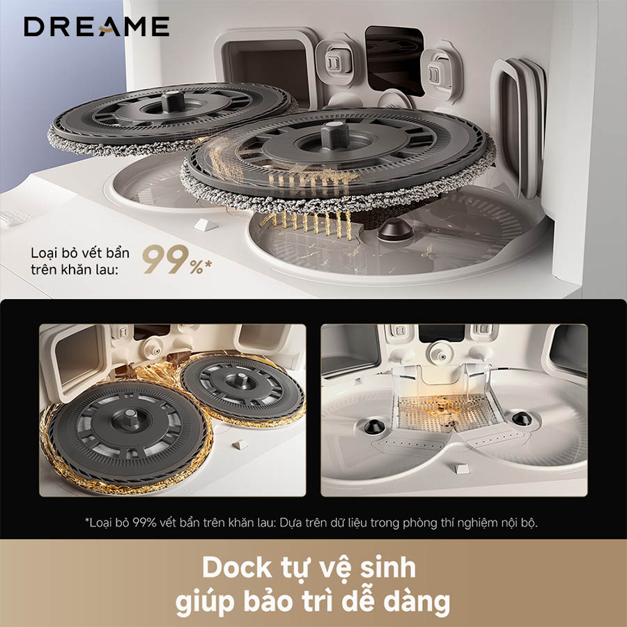 Robot hút bụi Dreame L40s Ultra ứng dụng công nghệ AceClean™ DryBoard để tự động làm sạch cả khay giặt và giẻ lau theo quy trình ba bước: