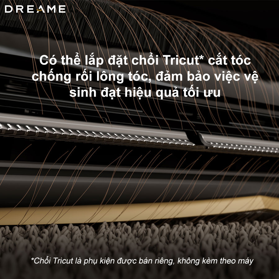 Robot Dreame X40 Master hỗ trợ khả năng lắp đặt chổi chính TriCut 2.0 (phụ kiện mua riêng), mang đến giải pháp chống rối tóc vượt trội, giúp quá trình làm sạch diễn ra mượt mà và liên tục. Chổi TriCut 2.0 được thiết kế với hệ thống cắt tóc an toàn ẩn bên trong, tự động cắt ngắn tóc và lông thú cưng quấn vào chổi, sau đó sẽ dễ dàng hút vào hộp chứa bụi. Tính năng này không chỉ ngăn ngừa tình trạng tắc nghẽn mà còn nâng cao hiệu quả làm sạch, mang lại trải nghiệm sử dụng tiện lợi và tối ưu.