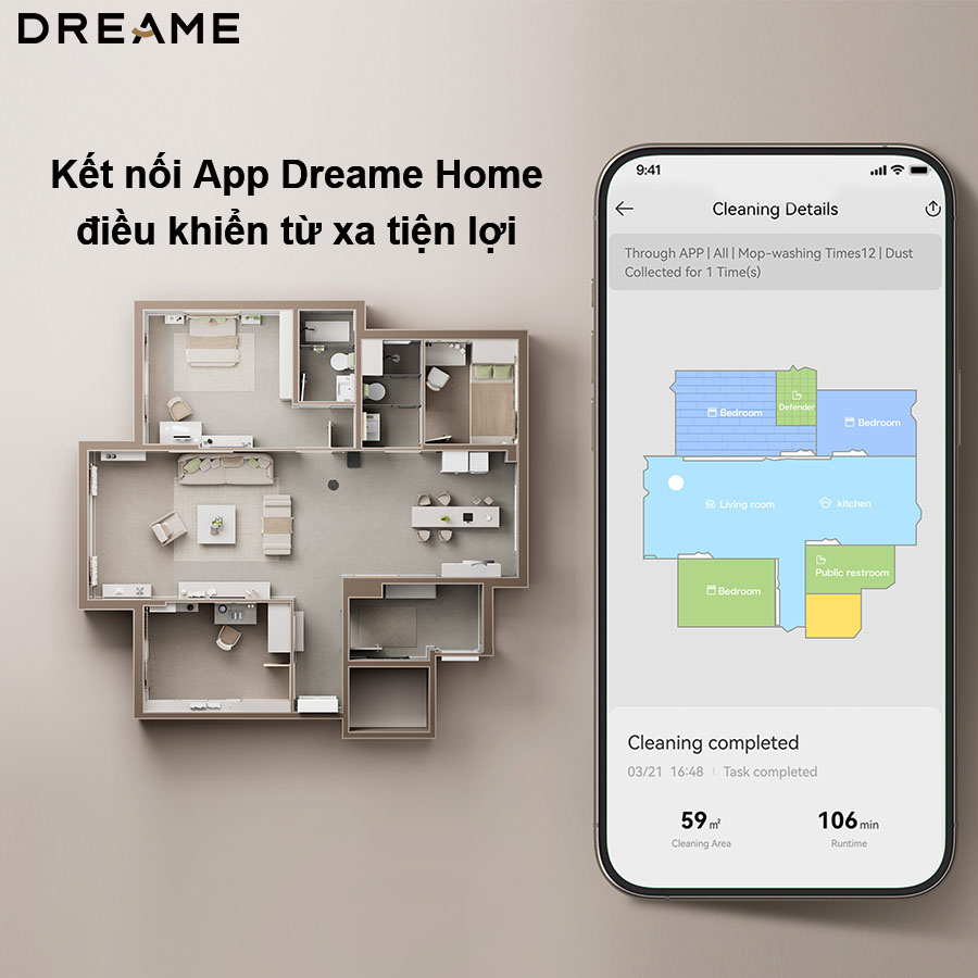 Với việc hỗ trợ khả năng kết nối với ứng dụng Dreamehome trên điện thoại di động, mang đến khả năng quản lý và điều khiển robot một cách thuận tiện. Thông qua ứng dụng, bạn có thể lên lịch làm sạch, theo dõi quá trình làm việc của robot, và tùy chỉnh các chế độ làm sạch theo nhu cầu cá nhân.