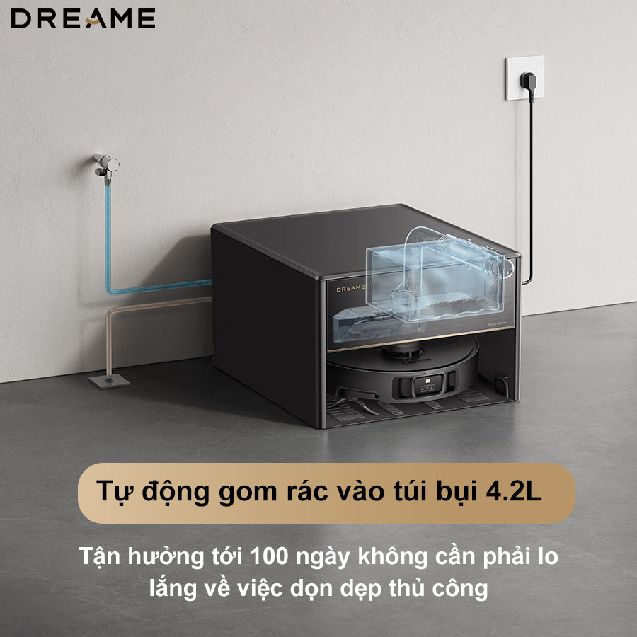Điểm nhấn độc đáo khác của Dreame X40 Master chính là hệ thống bơm xả nước tự động, cho phép quản lý nước hiệu quả mà không cần đến sự can thiệp thủ công. Hệ thống này đảm bảo robot luôn sẵn sàng hoạt động với hiệu suất cao nhất, mang lại sự tiện lợi tối đa cho người dùng.