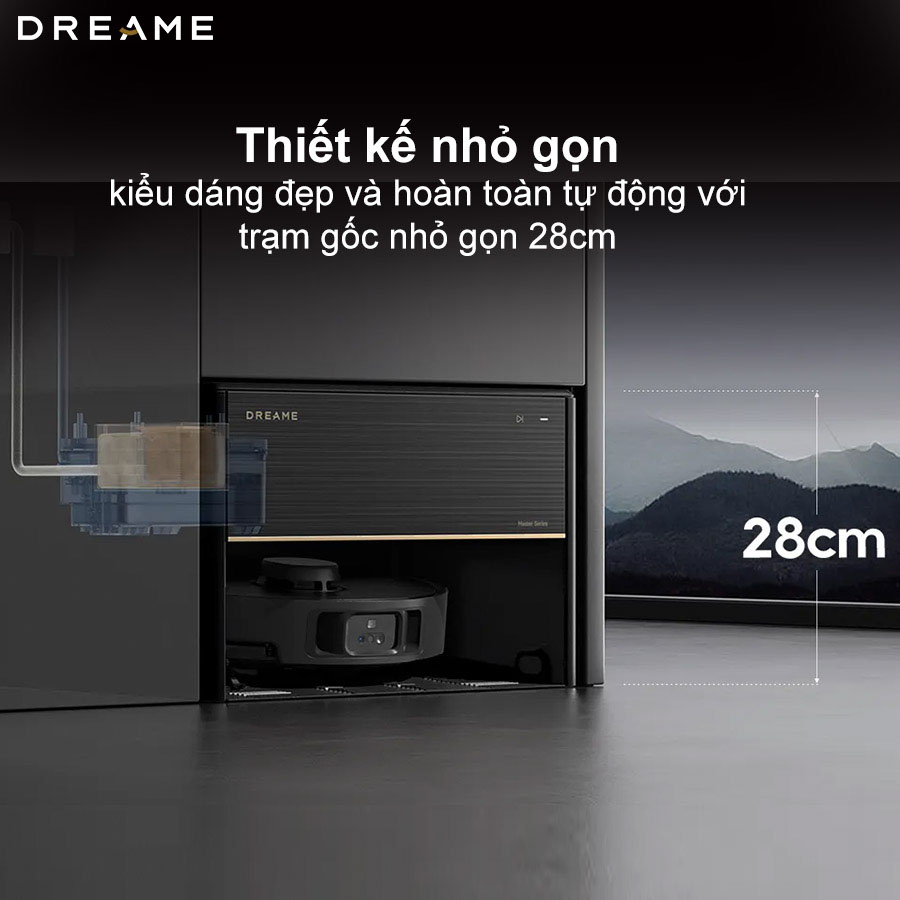 Robot hút bụi lau nhà Dreame X40 Master gây ấn tượng mạnh với trạm sạc siêu nhỏ gọn, chiều cao chỉ khoảng 28cm, không chỉ tiết kiệm diện tích mà còn tôn lên vẻ đẹp hiện đại của không gian sống. Thiết kế nhỏ gọn này dễ dàng lắp đặt âm tủ, giữ cho ngôi nhà luôn gọn gàng và tinh tế.
